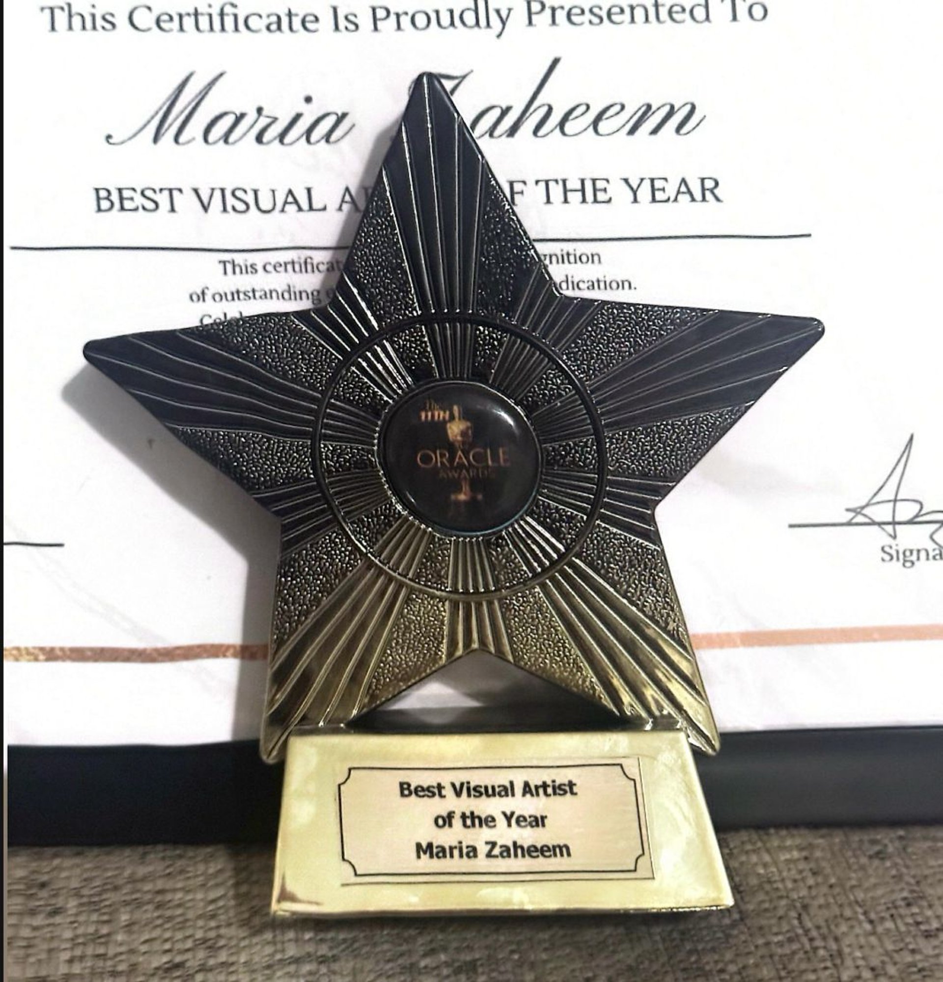 I was honored to be nominated and awarded at the Oracle Art Award Show for my artistic contribution and creative expression. This recognition strengthened my commitment to promoting Pakistani and Kashmiri art on international platforms.