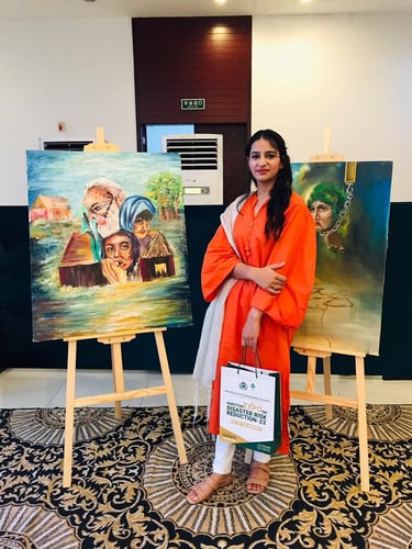 I showcased my work in the Haiku Art Illustration Expo, a cross-disciplinary exhibition organized by the National Disaster Management Authority (NDMA), Islamabad in July 2023. The exhibition combined the beauty of visual arts with the depth of Haiku poetry, encouraging artists to create interpretations that bridged literature and painting.