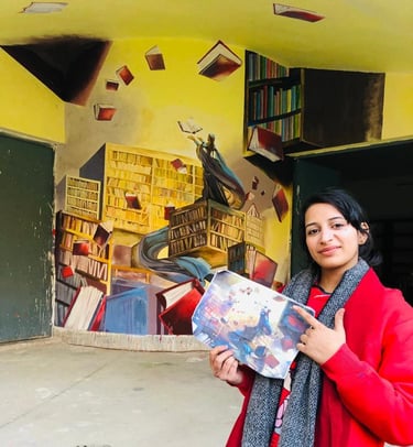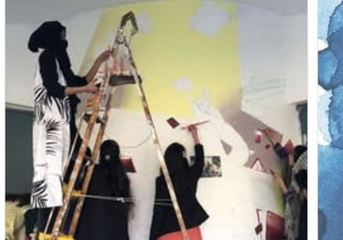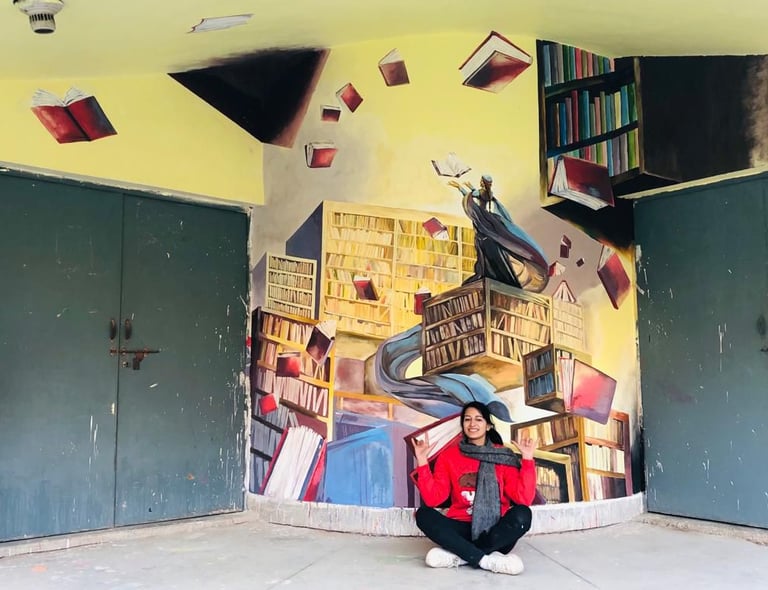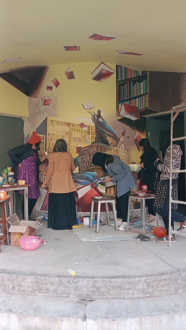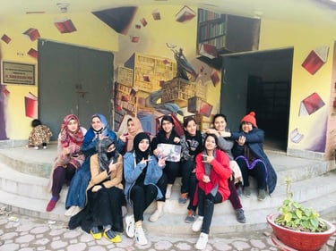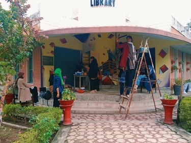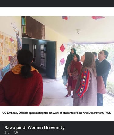 In 2022, I collaborated with fellow artists to create a wall mural on the library building at Rawalpindi Women University. This initiative was not an academic assignment but an independent art project undertaken to enrich the visual environment of the campus.