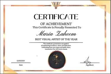 I was honored to be nominated and awarded at the Oracle Art Award Show for my artistic contribution and creative expression. This recognition strengthened my commitment to promoting Pakistani and Kashmiri art on international platforms.