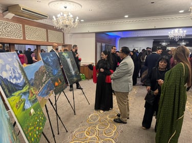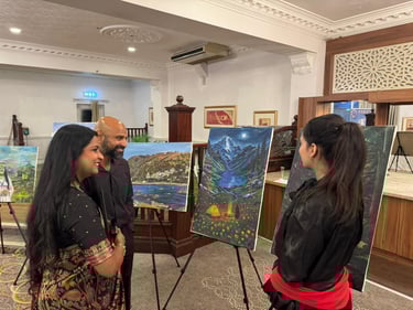 I exhibited a collection of landscape paintings that celebrated the cultural and natural beauty of Pakistan and Kashmir, reflecting the emotional bond between people and their homeland. My work expressed peace, identity, and heritage through color, form, and movement.