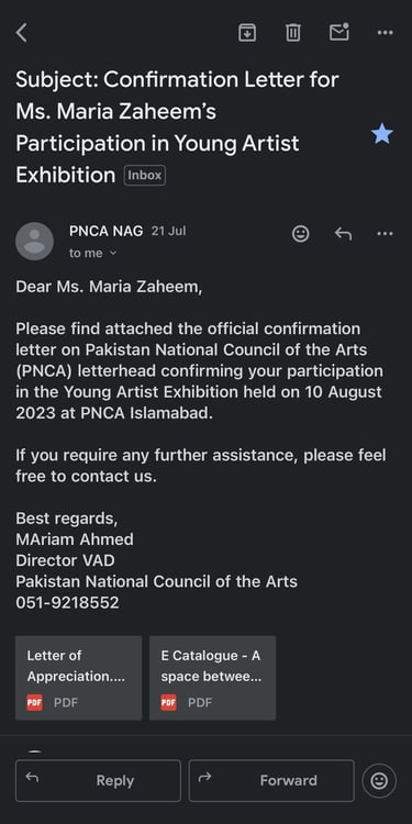 I participated in the exhibition organized at the prestigious Pakistan National Council of the Arts (PNCA) which marked a significant milestone in my career. PNCA, being Pakistan’s leading cultural institution, provides a national platform for artists to present their work to diverse audiences, including critics, senior artists, and art enthusiasts.