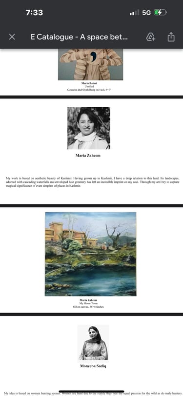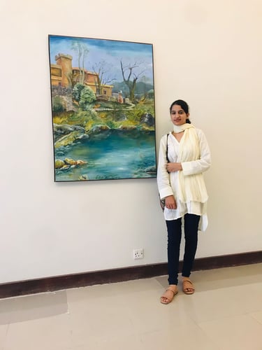 In this exhibition, I presented my paintings inspired by the natural landscapes of Kashmir and northern Pakistan. My work highlighted the beauty of waterfalls, lakes, valleys, and village life, painted in vibrant colors and expressive brushstrokes. The response from the audience was highly encouraging, as my canvases resonated with themes of peace, nature, and cultural identity.